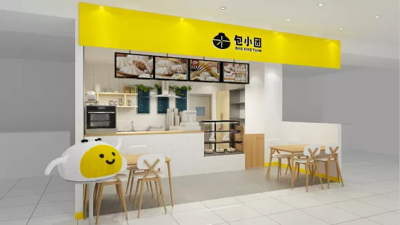 迎合年輕人的喜好,改變了品牌調性的“包小團”,打出了“包子界最有根兒的潮牌”的口號。從漫畫風格的LOGO、到以黃、白兩色為主的店面設計,都在營造小清新的用餐氛圍。