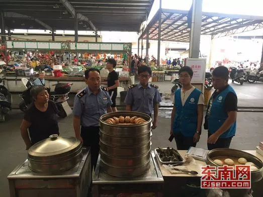▲泉州市市場(chǎng)監(jiān)督管理局對(duì)市場(chǎng)攤點(diǎn)紅糖饅頭進(jìn)行檢查
