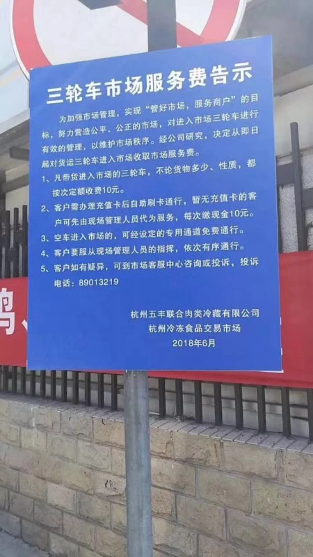 6月初,杭州五豐聯合肉類冷藏有限公司、杭州冷凍食品交易市場的一則“三輪車市場服務費”告示讓在經銷商群體中引起了軒然大波!原本忙于經營的經銷商們慌了神:按照告示上的收費標準,三輪車進一次收費10元,生意好的時候一天要進上百次,真的要一天給市場交1000元“三輪車市場服務費”嗎?