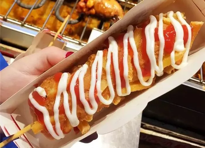 “網紅新品之一”拉絲芝士棒(又叫拉絲熱狗棒),也誕生在這場白熱化的全民狂歡中。繼源自韓國的街頭小吃“牛排杯”風靡吃貨界之后,同樣起源于韓國的拉絲芝士棒又乘著網紅潮流的東風,以指數級發展速度,迅速占領吃貨們的心和胃。