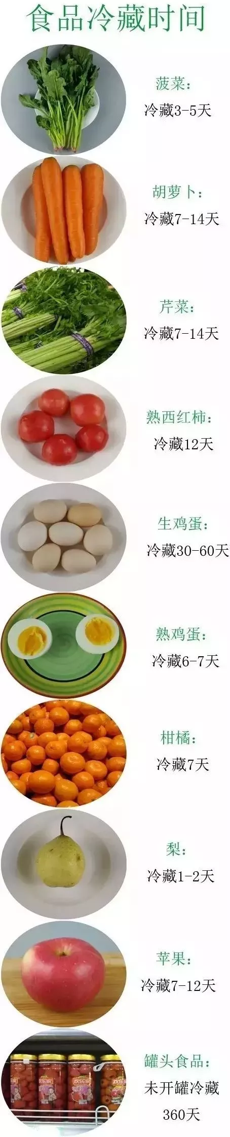 經(jīng)過上圖展示我們可以看出,一般果蔬類,蛋類以及奶類食物冷藏期都比較短,少則1~2天,多則7~14天,所以買來之后應盡快食用。經(jīng)過高溫殺菌處理過的罐頭類食品一般保存時間較長,可達360天,像雞肉、牛肉、肉排、魚類等肉制品冷藏期普遍較短,但冷凍條件下都比較穩(wěn)定,保存時間甚至能長達360天。