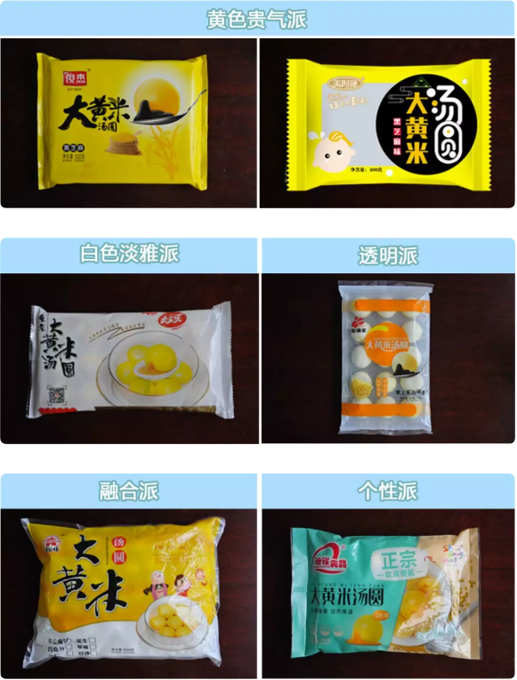 黃色派系,和大黃米湯圓的名稱相互呼應最應景。這也是俊杰在這一指標中,遙遙領先的原因之一。白色則是當前行業流行色,代表著高端和干凈衛生的形象,也很不錯;透明色調則讓消費者可以直接看清產品的形態,方便消費者選購。而且有了網紅奶“小白袋”的成功,透明包裝正在成為一種流行,從包裝嚴密到透明包裝,這是包裝理念的一種突破。