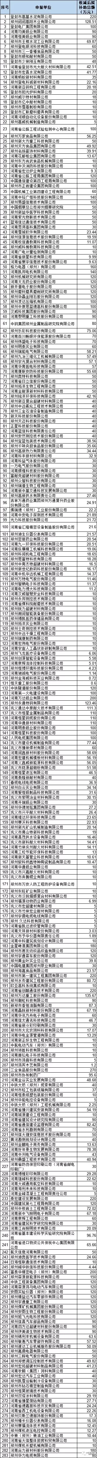 附:2018年鄭州市規上企業研發費用后補助專項資金審核結果
