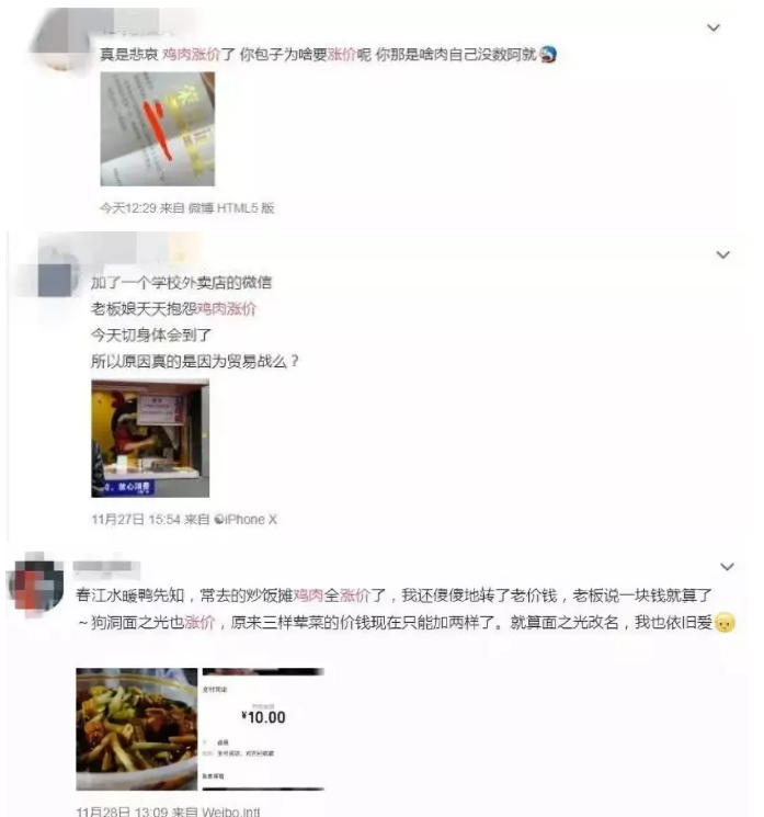 在微博上,已經(jīng)有不少網(wǎng)友發(fā)現(xiàn)了最近的雞肉價格似乎與過往不太一樣。還有不止一位洋快餐小王子表示,連xxx雞肉卷的售價都漲了一塊錢。