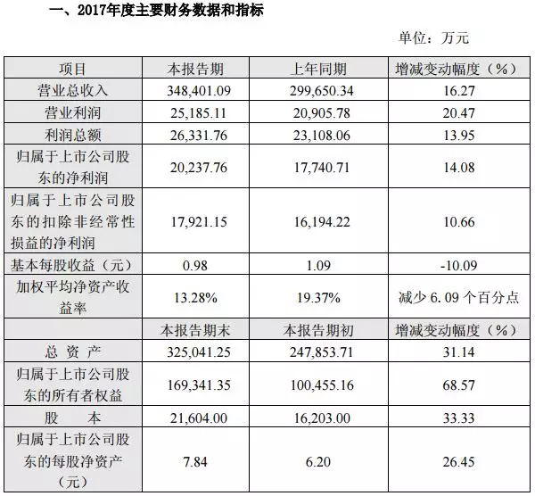 3月13日,惠發股份發布2017年年度報告,報告期內,公司實現營業收入9.39億元,較去年同期增長5.47%;實現歸屬于母公司股東的凈利潤6038.11萬元,較去年同期增長43.36%。公司擬以2017年末的總股本1.2億股為基數,向全體股東每10股派發現金股利2.5元(含稅),同時以資本公積每10股轉增4股。