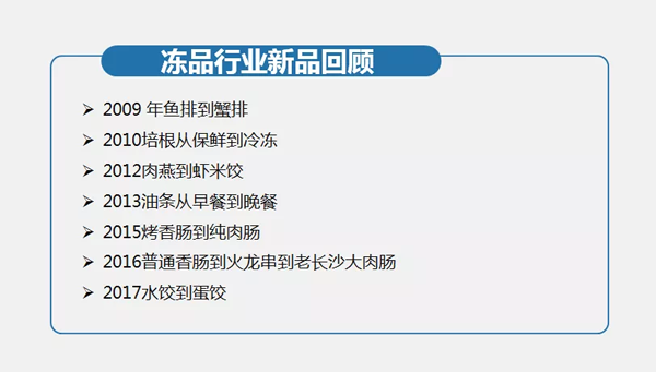首先,回顧下近些年凍品行業的新品。