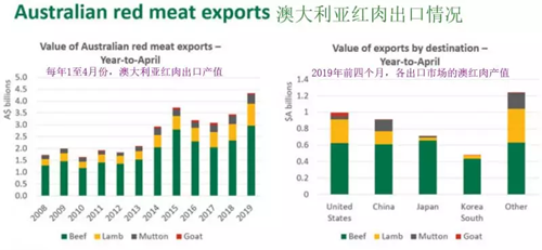 根據澳肉類及畜牧業協會(MLA)最新報告,2019年1至4月份,澳大利亞盒裝紅肉出口產值達到43.4億澳元,較2018年同期增長26%。這是澳紅肉貿易史上年度前四個月出口額首次突破40億澳元,第二次突破35億澳元大關。
