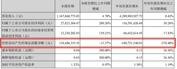 第三季度凈利增幅280.26%