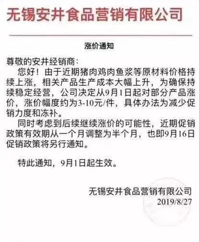 此外,前三季度,安井食品毛利率25.0%,同比降1.3%,其中第三季度毛利率23.9%,同比降1.7%。華創(chuàng)食飲推測,是由肉類等成本上行所致。安井已于9月采取提價動作,漲價幅度3-10元/件,后續(xù)判斷仍有提價的可能。