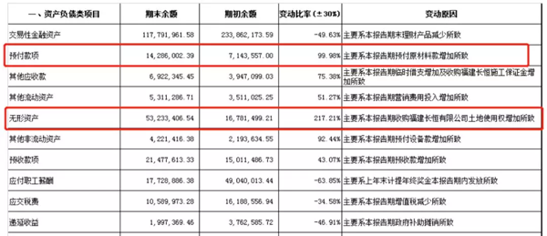 從上圖可知,海欣資產(chǎn)負債增幅最大的兩項是無形資產(chǎn)和預付款項。