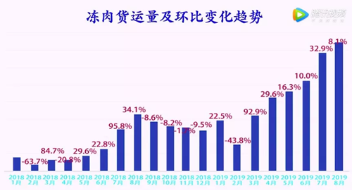 自非洲豬瘟在我國發生以來,冷鮮肉和凍肉的調運出現數倍乃至十數倍的增。