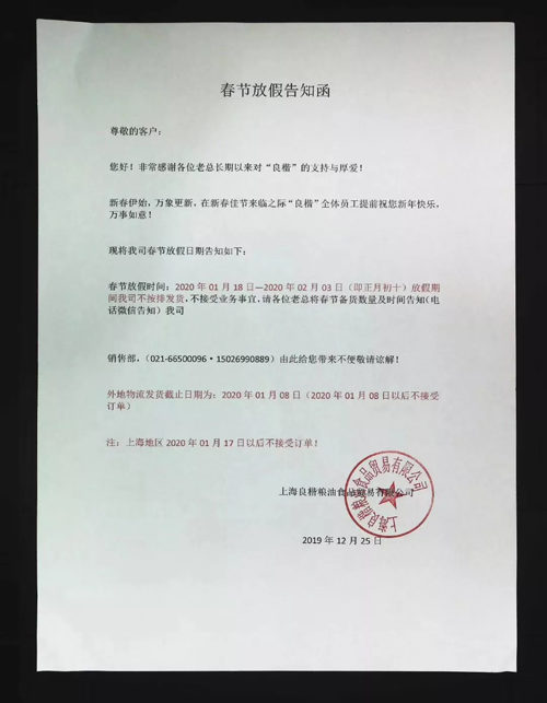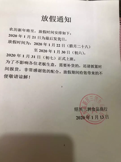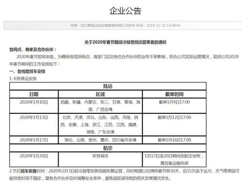 隨著年關越來越近,這兩天,一張張放假通知刷屏了冷食君的朋友圈,其中冷鏈物流企業的放假時間尤其值得留意,因為直到物流停了,才意味著春節備戰告一段落。