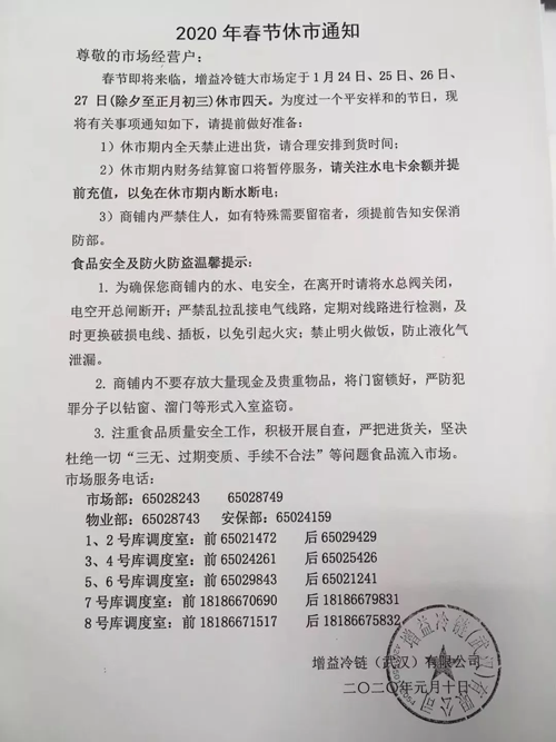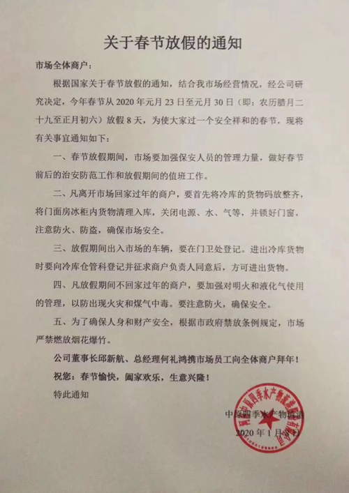與此同時,多個凍品交易市場也張貼出了休市通知: