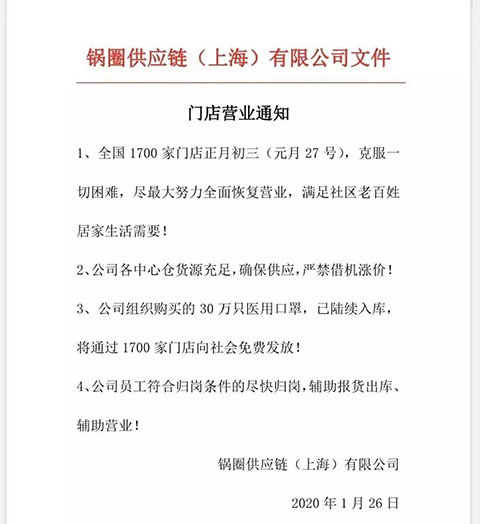 上海瑞軒食品有限公司則針對疫情下發了緊急通知。