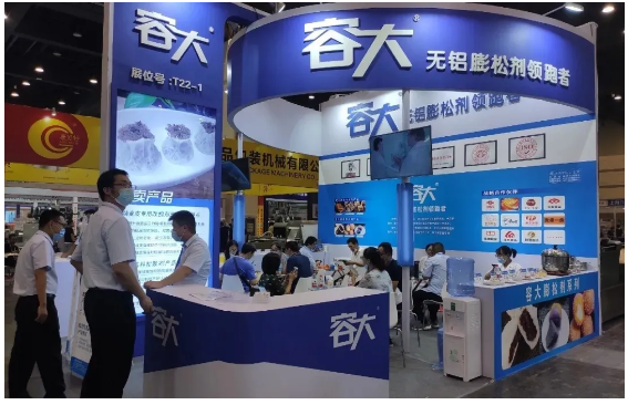 值得一提的是,作為無鋁膨松劑行業領導者,今年容大結合市場趨勢,推出了椰汁流心球、小兔子布丁、燒賣、云吞、松糕、生胚包子、糍粑等多款米面新品,一經展出即受到了與會觀眾的廣泛關注。
