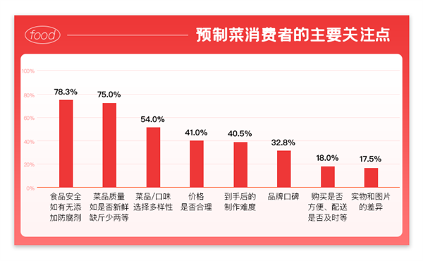 食品安全、菜品原料質(zhì)量是首先需要保證的,其次菜品菜系口味的豐富程度、性價(jià)比、以及到手后的再加工難度也是消費(fèi)者在選擇預(yù)制菜品時(shí)非常關(guān)注的指標(biāo);