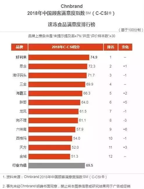 小編認(rèn)為該評(píng)價(jià)標(biāo)準(zhǔn)比較有疑問的是:安井、海欣、興威、升隆等企業(yè)都沒有上榜,反倒是好利來、天方、西格瑪、胖哥、科迪(金城)作為速凍行業(yè)滿意度排行前12上榜。