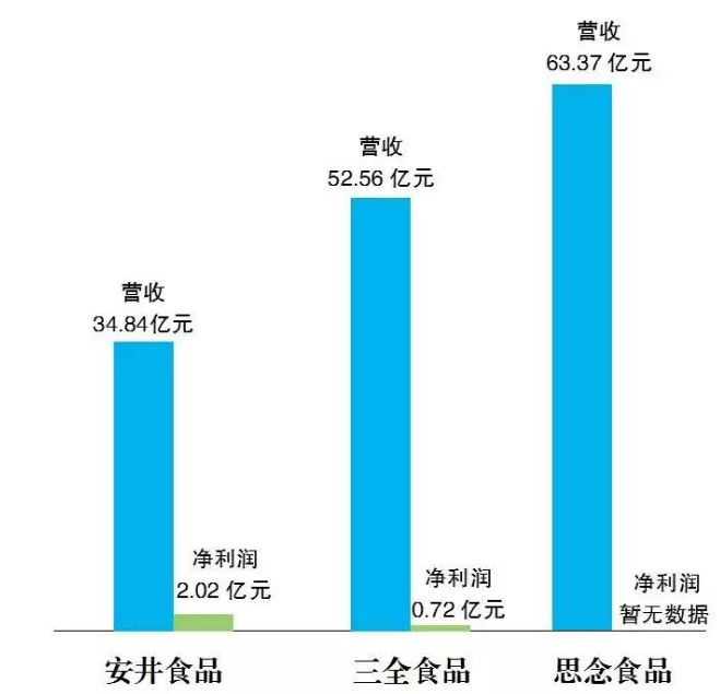 安井、三全、思念三家企業2017年年報營收對比圖: